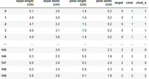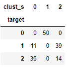 여기서 target의 번호와 clust의 번호가 다른것은 군집이 잘못나온게 아니라 넘버링된 번호가 다를 뿐입니다.
