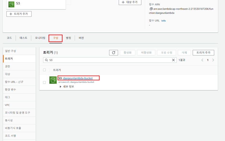 그러면 다음과 같이 S3 트리거가 생성이 됩니다.